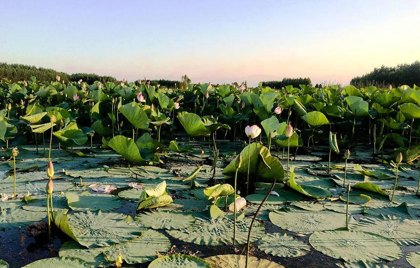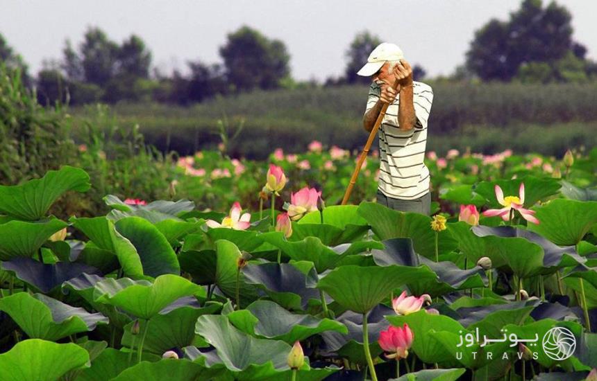 تالاب انزلی؛ قایق سواری میان نیلوفران آبی