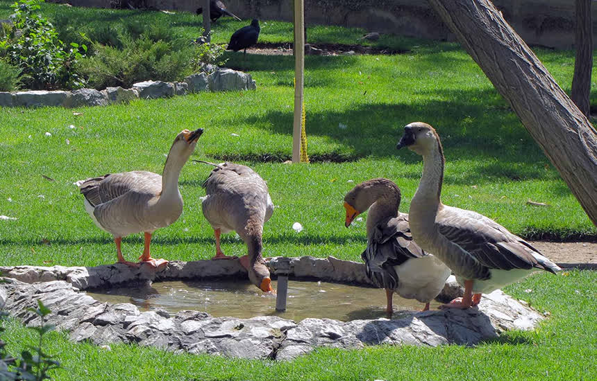 ناگفته نماند که برای پرندگانی مثل مرغ عشق و طوطی که در هوای آلوده شهری نمیتوانند زندگی کنند، قفسهای شیشهای در نظر گرفته شده است و با تهویه مناسب داخل فضای شیشهای، هوای مناسب آنها تامین میشود. در برکههای متعدد داخل باغ نیز صخرههای مصنوعی قرار دادهاند تا محیطزیست پرندگانی همچون طاووس و قرقاول شبیهسازی شود. در سایر بخشهای باغ پرندگان ناژوان، ۱۳۰ گونه پرنده دیگر زندگی میکنند.