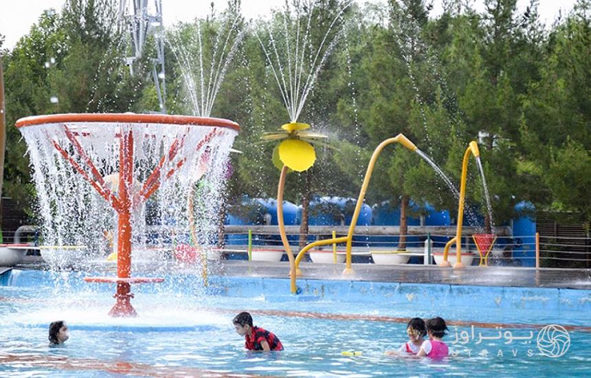 پارک آبی کودکان ناژوان، فضایی به مساحت ۲,۵۰۰ مترمربع و مخصوص کودکان ۳ تا ۱۲ سال است (دختران ۳ تا ۹ سال و پسران ۳ تا ۱۲ سال). چتر آبی، دوچرخه آبپاش، نخل آبپاش، قایقسواری و پل شناور از تفریحات این پارک هستند. نکات ایمنی در پارک آبی ناژوان رعایت شده و در وسایل بازی و استخرها، کفپوشهای استاندارد به کار رفته و عمق استخرها 40 سانتیمتر است. تعدادی صندلی استراحت هم برای نشستن والدین تعبیه شده است.