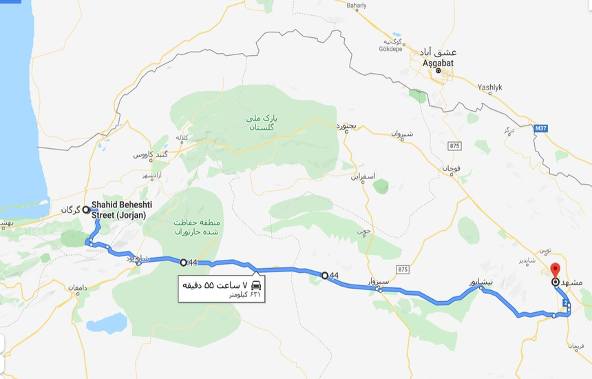 فاصله مشهد تا گرگان چند ساعت است؟