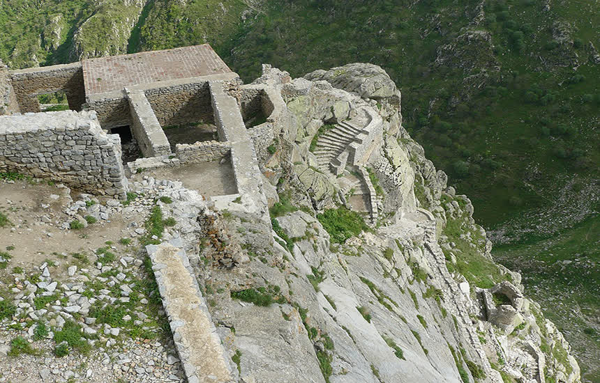 تنها راه ورود به قلعه، دالان سنگی 200 متری است که فقط برای عبور یک نفر جا دارد.