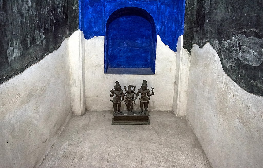 گرداگرد این فضا راهروهایی ساخته شدهاند که زائران ازطریق آنها میتوانستند در حالت طوافگونهای پیرامون اتاق اصلی حرکت کنند؛ حرکتی که در آیینهای هندو نمادی از پیوستن به چرخه کیهانی است. در این راهروها و اتاقکهای جانبی، طاقچههایی برای قراردادن تندیسهای مقدس یا نمادهای آیینی وجود دارد. بالای گنبد ۷۲ برجک کوچک به چشم میخورد که با ظرافت خاصی طراحی شدهاند. این برجکها صرفاً تزیینی نیستند؛ بلکه نشاندهنده باورهای هندویی درباره طبقات آسمانی و نیروهای محافظ و توازن جهاناند. در مرکز گنبد نیز، میلهای عمودی وجود دارد که بهعنوان نماد «محور هستی» و پیوند زمین و آسمان شناخته میشود. اگر قصد دارید از بندرعباس بهسمت کیش بروید، پیشنهاد میکنیم که مقاله نحوه رفتن از بندرعباس به کیش را بخوانید.