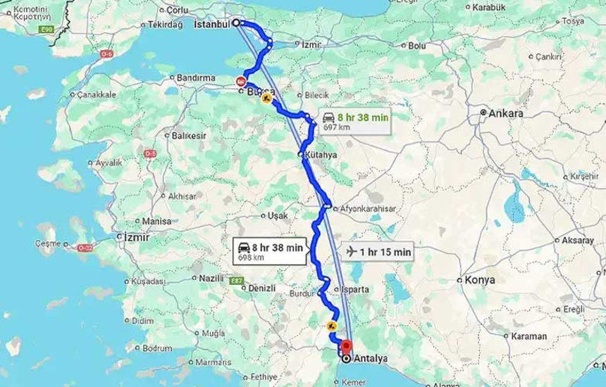 فاصله بین استانبول و آنتالیا چقدر است؟