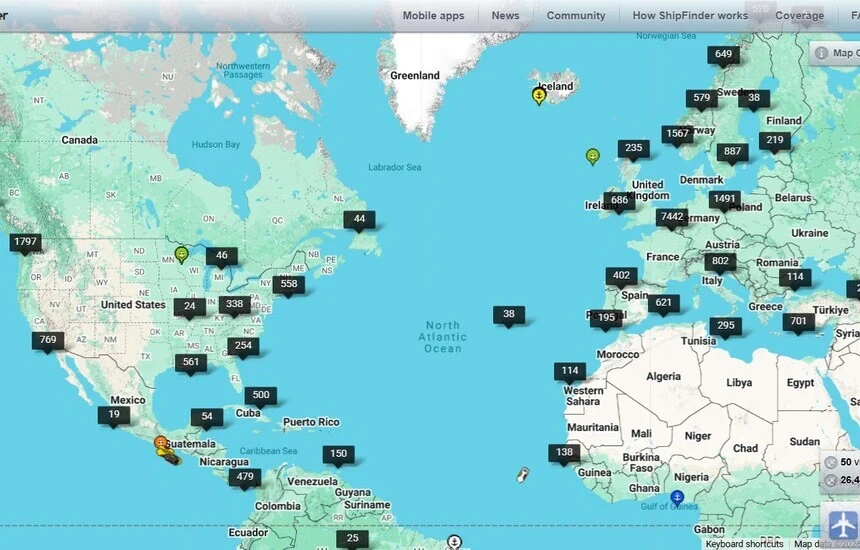 - MarineTraffic: موقعیت زنده بیش از ۵۵۰ هزار کشتی و اطلاعات فنی آنها شامل نوع و سرعت و حتی مالکیتشان را نشان میدهد. اپلیکیشن این ابزار نسخه رایگان با محدودیت و نسخه پولی برای ردیابی ماهوارهای دارد (دانلود اپلیکیشن MarineTraffic).