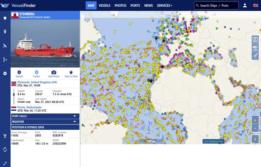 - VesselFinder: اطلاعات لحظهای بیش از ۲۰۰ هزار شناور را ردیابی میکند. در نسخه رایگان به اطلاعات پایه و تاریخچه ۲۴ ساعته موقعیت کشتیها دسترسی دارید (دانلود اپلیکیشن VesselFinder).