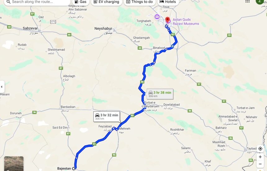 مدتزمان سفر از بجستان تا مشهد چقدر است؟