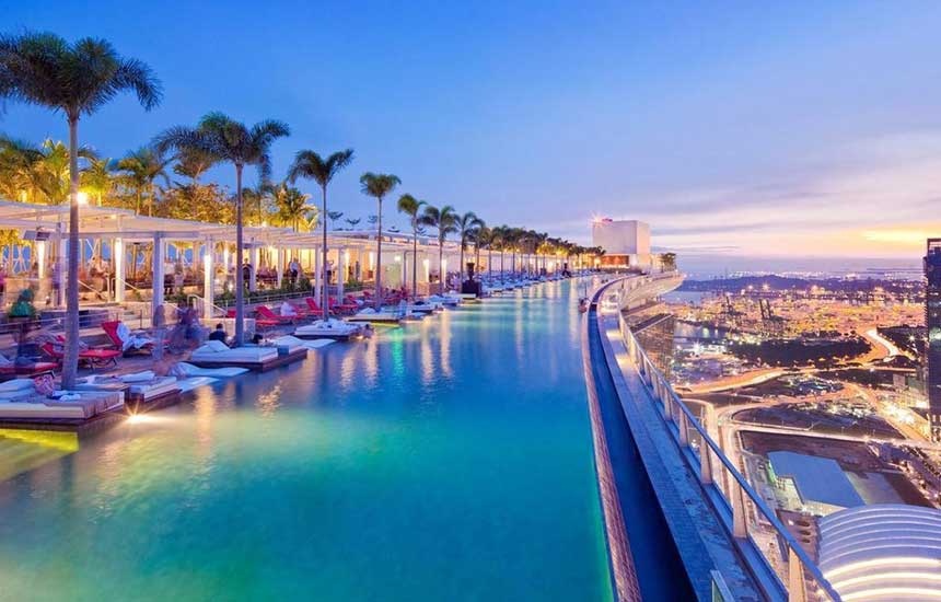 در پارک آسمانی، بزرگترین استخر بیکران دنیا قرار گرفته است؛ استخری بدون حفاظ و مرز مشخص که آب آن از لبهها به پایین میلغزد و چشماندازی شگفتانگیز از شهر سنگاپور را پیش روی مهمانان قرار میدهد. هتل مارینا بی سندز با بیش از ۲,۵۰۰ اتاق لوکس، مجموعهای از رستورانهای بینالمللی، مراکز خرید و امکانات تفریحی متنوع، یکی از هتلهای کامل و مجهز جهان به شمار میرود. اقامت در این هتل تجربهای منحصربهفرد از تجمل و آرامش و چشمانداز خیرهکننده آسمان سنگاپور است.