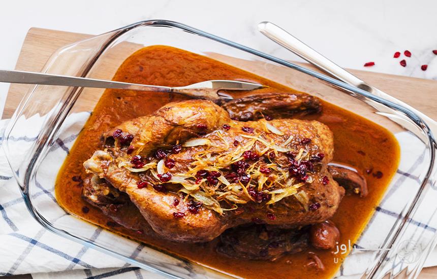 برای پخت این غذا ابتدا مرغ را به مدت 2 ساعت درون محلولی از آب، نمک و سرکه قرار میدهند تا بوی مرغ گرفته شود. سپس مرغ را درون ماهیتابه سرخ کرده و داخلش را با مخلوط سبزیجات معطرسرخشده، گردو، رب انار، آلو، سیر، کشمش و پیازداغ پر میکنند. مرغ را درون ظرفی داخل فر گذاشته و بعد از 2 ساعت خوشمزهترین غذای محلی را تحویل میگیرند!