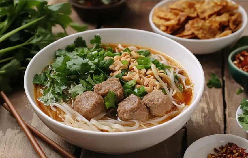 ادویهها و مواد غذایی مختلفی که در غذاهای تایلندی استفاده میشوند، ممکن است با ذائقه هرکسی سازگار نباشد؛ اما این سوپ نودل که از گوشت و رشتهفرنگی و ترکیب با چند نوع ادویه شگفتانگیز پخته شده، از سوپهای تایلندی خوشمزه است که در مقایسه با سایر غذاها سابقه کمتری دارد. این سوپ را میتوانید با گوشت مدنظر خود (مرغ یا گوسفند) سفارش دهید.