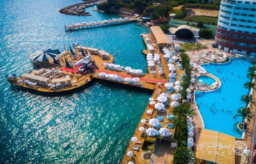 - امکانات: رستوران، کافیشاپ، اسنکبار، حمام ترکی، استخر روباز و سرپوشیده، جکوزی، زمان بازی کودک، ورزشهای آبی، ساحل اختصاصی و …