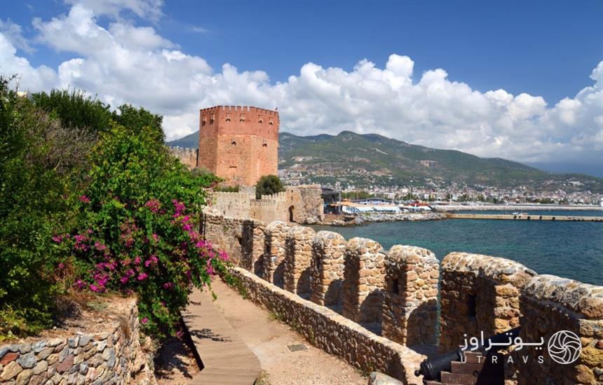 یکی مهمترین جاذبههای تاریخی آلانیا قلعهای باستانی و خیرهکننده است که در بالای تپهای مشرف به دریای مدیترانه واقع شده. این قلعه که به سبک معماری سلجوقی ساخته شده، شامل 140 برج است و قدمتش به قرون وسطی برمیگردد. از جمله بناهایی که داخل این قلعه وجود دارد میتوانیم به کلیسای آیایورگی، حمامهای سلجوقی، مسجد، زندان، فانوس دریایی، خزانه تاریخی و مقبره سلطان آکشابه اشاره کنیم. اگر اهل عکاسی هستید، پیشنهاد میکنیم که بازدید از این قلعه را حتماً در برنامهتان قرار دهید.